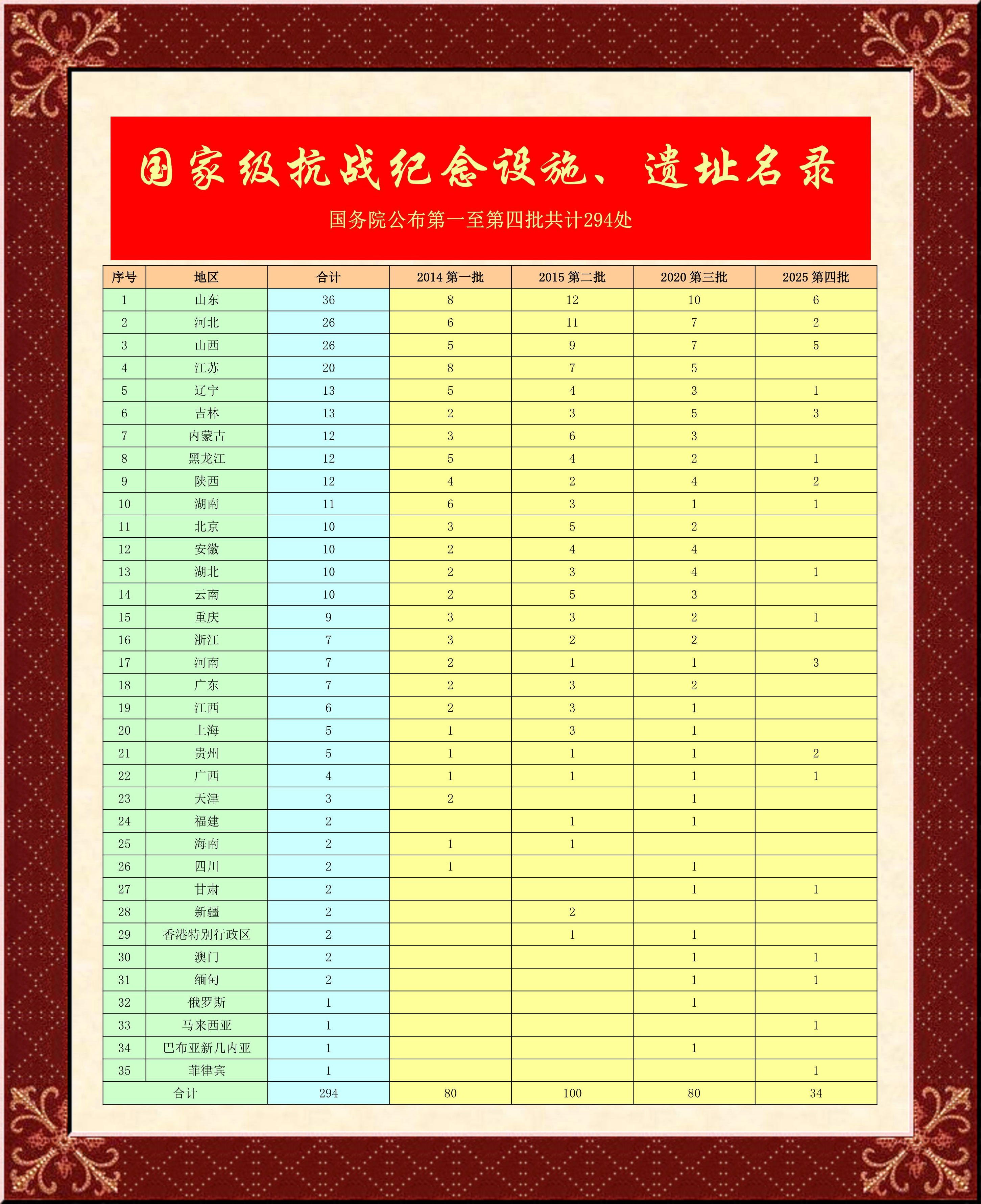 第四批國(guó)家級(jí)抗戰(zhàn)紀(jì)念設(shè)施、遺址名錄