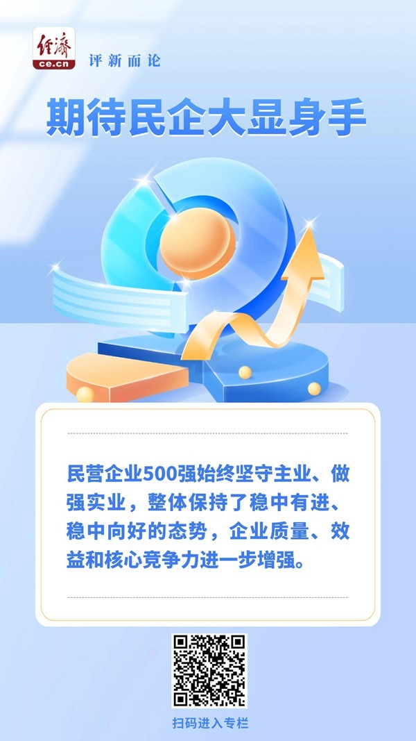 奮楫者先,創(chuàng)新者強。面對外部壓力加大、內(nèi)部困難增多的復(fù)雜嚴峻形勢,民營企業(yè)500強始終堅守主業(yè)、做強實業(yè),整體保持了穩(wěn)中有進、穩(wěn)中向好的態(tài)勢,企業(yè)質(zhì)量、效益和核心競爭力進一步增強。這不僅是民營經(jīng)濟韌性的生動體現(xiàn),更折射出中國經(jīng)濟的蓬勃活力與深厚潛力。同時也需理性清醒地認識到,我國民營企業(yè)仍有很大的發(fā)展空間,未來需進一步保持戰(zhàn)略定力、堅定發(fā)展信心,心無旁騖辦好自己的事,在深耕領(lǐng)域中持續(xù)突破。期待以“500強”為代表的民營企業(yè)在廣闊前景中大顯身手,為中國經(jīng)濟高質(zhì)量發(fā)展注入更澎湃的動能。(中國經(jīng)濟網(wǎng)專欄作者 喬瑞慶)