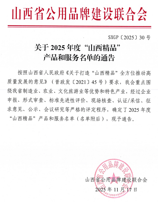 【行業(yè)動態(tài)】關于2025年度“山西精品” 產品和服務名單的通告