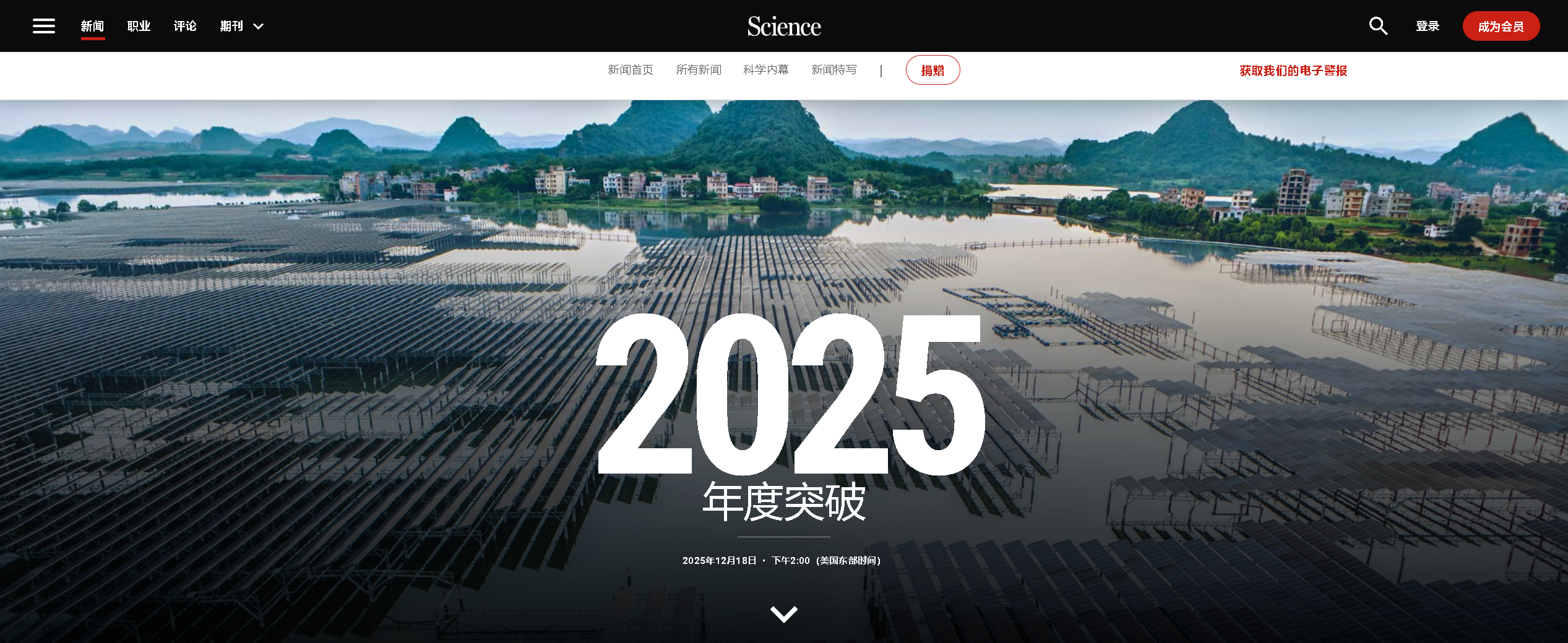 新華社洛杉磯12月18日電(記者譚晶晶)美國《科學》雜志18日公布其評選的2025年度十大科學突破,“全球可再生能源增長勢不可當”獲評年度頭號突破。該雜志認為,2025年全球可再生能源在多個領域超過傳統(tǒng)能源,這一重大轉型主要由中國引領。