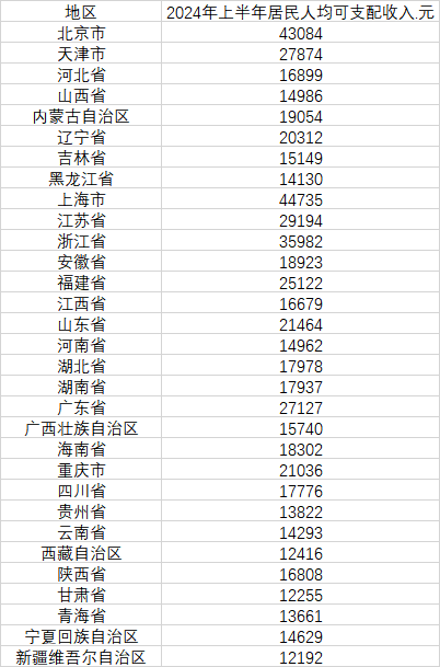 31省份上半年人均可支配收入出爐,北京、上海超4.5萬元國(guó)家統(tǒng)計(jì)局網(wǎng)站公布了31個(gè)省份2025年上半年居民人均可支配收入情況。數(shù)據(jù)顯示,今年上半年,有11個(gè)省份居民人均可支配收入超過2萬元,其中,上海和北京超過了4.5萬元,江蘇和浙江超過3萬元。