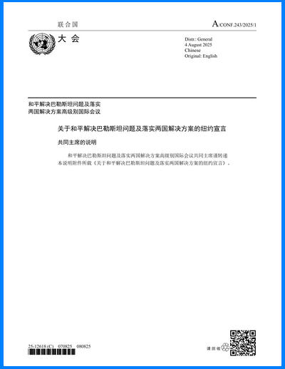 聯(lián)合國(guó)大會(huì)通過(guò)《紐約宣言》支持以巴兩國(guó)方案