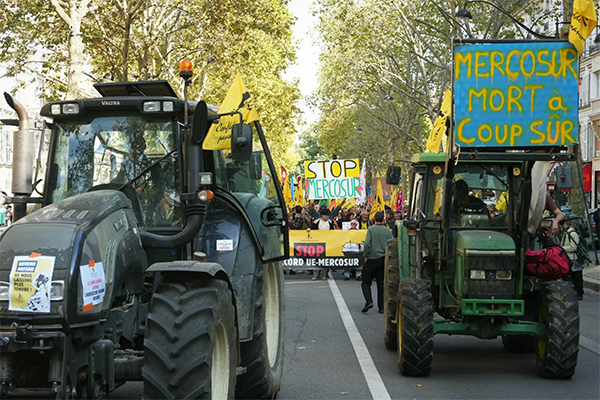 協(xié)議簽署儀式將在當(dāng)?shù)貢r間12月20日舉行,但在最后關(guān)頭,這項協(xié)議依然面臨歐盟內(nèi)部的阻力。報道稱,法國農(nóng)民10月以來多次舉行抗議示威,反對歐盟-南方共同市場自貿(mào)協(xié)定。法國農(nóng)民擔(dān)心,拉美農(nóng)產(chǎn)品通過自貿(mào)協(xié)定進入歐洲市場,將沖擊本地農(nóng)業(yè)。