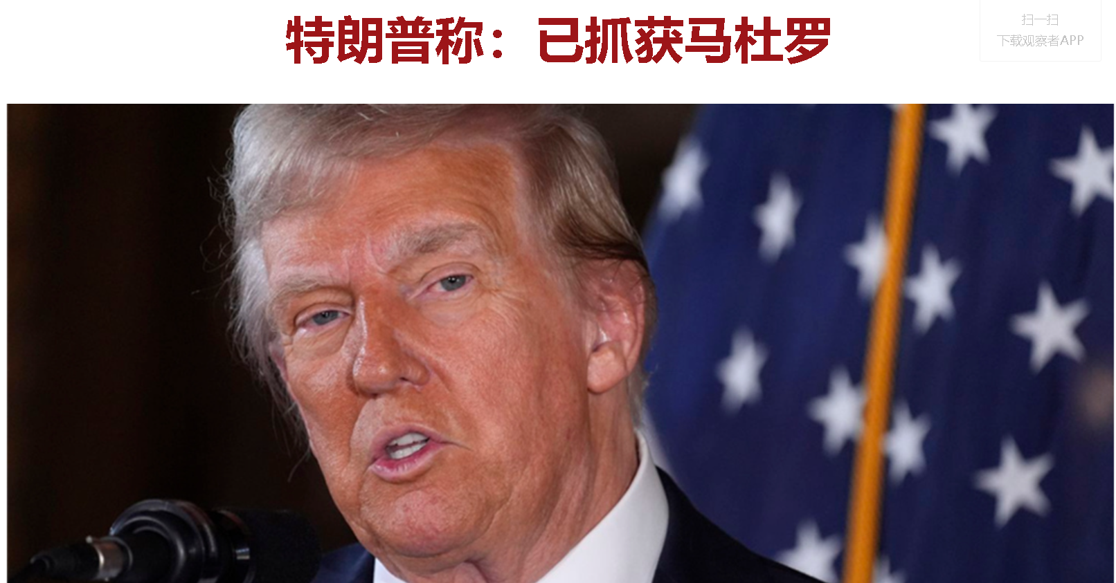 報(bào)道還提到,在接受《泰晤士報(bào)》簡(jiǎn)短電話采訪時(shí),特朗普對(duì)“抓獲”馬杜羅的行動(dòng)成功大加贊賞。他說(shuō),“此次行動(dòng)的籌劃堪稱完美,參與行動(dòng)的軍人和相關(guān)人員都極其出色。事實(shí)上,這是一場(chǎng)精彩絕倫的軍事行動(dòng)?!?