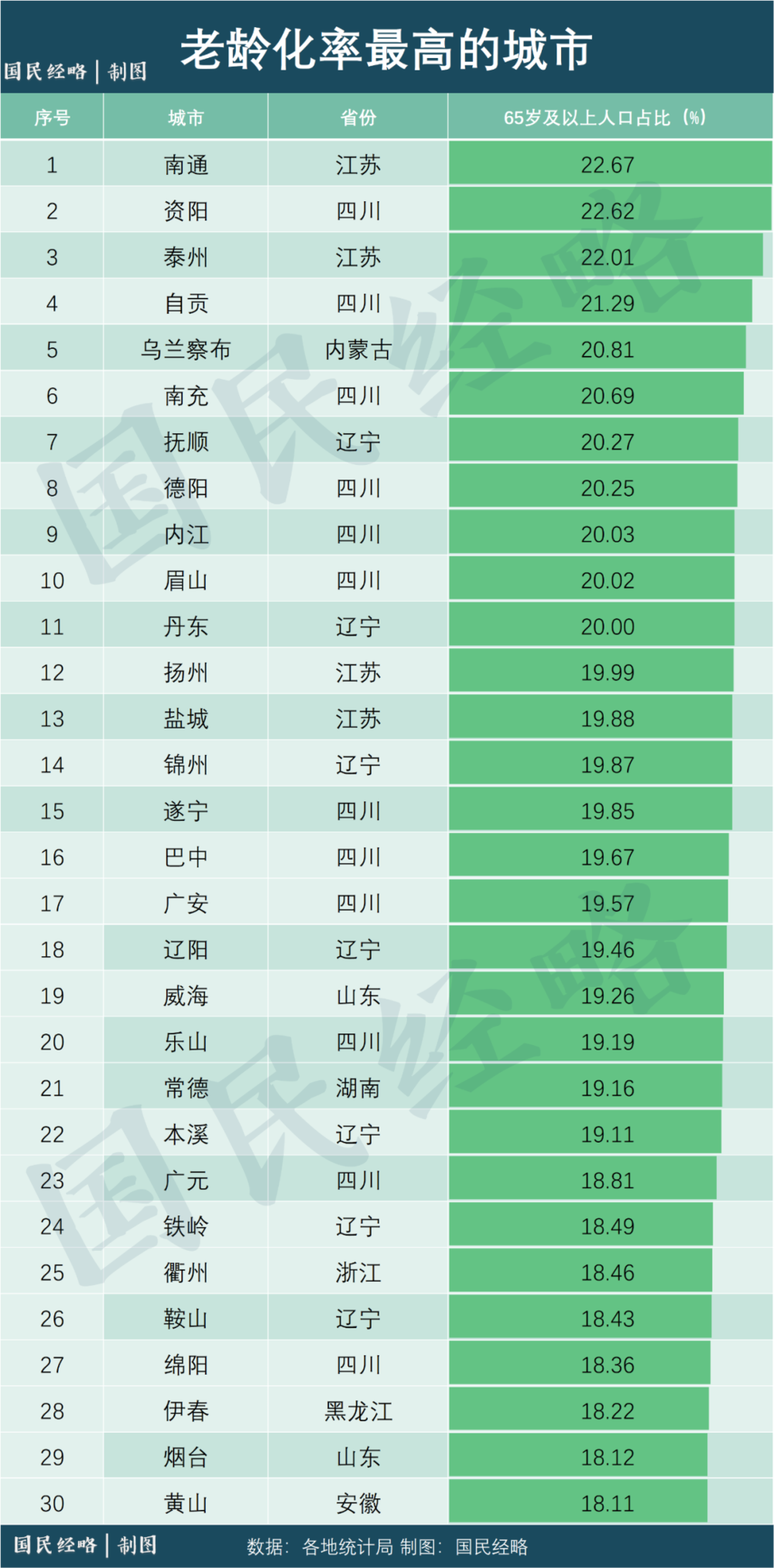 根據(jù)七普,2020年,江蘇南通老齡化率高達(dá)22.67%,超過東北所有地市,位居全國第一。