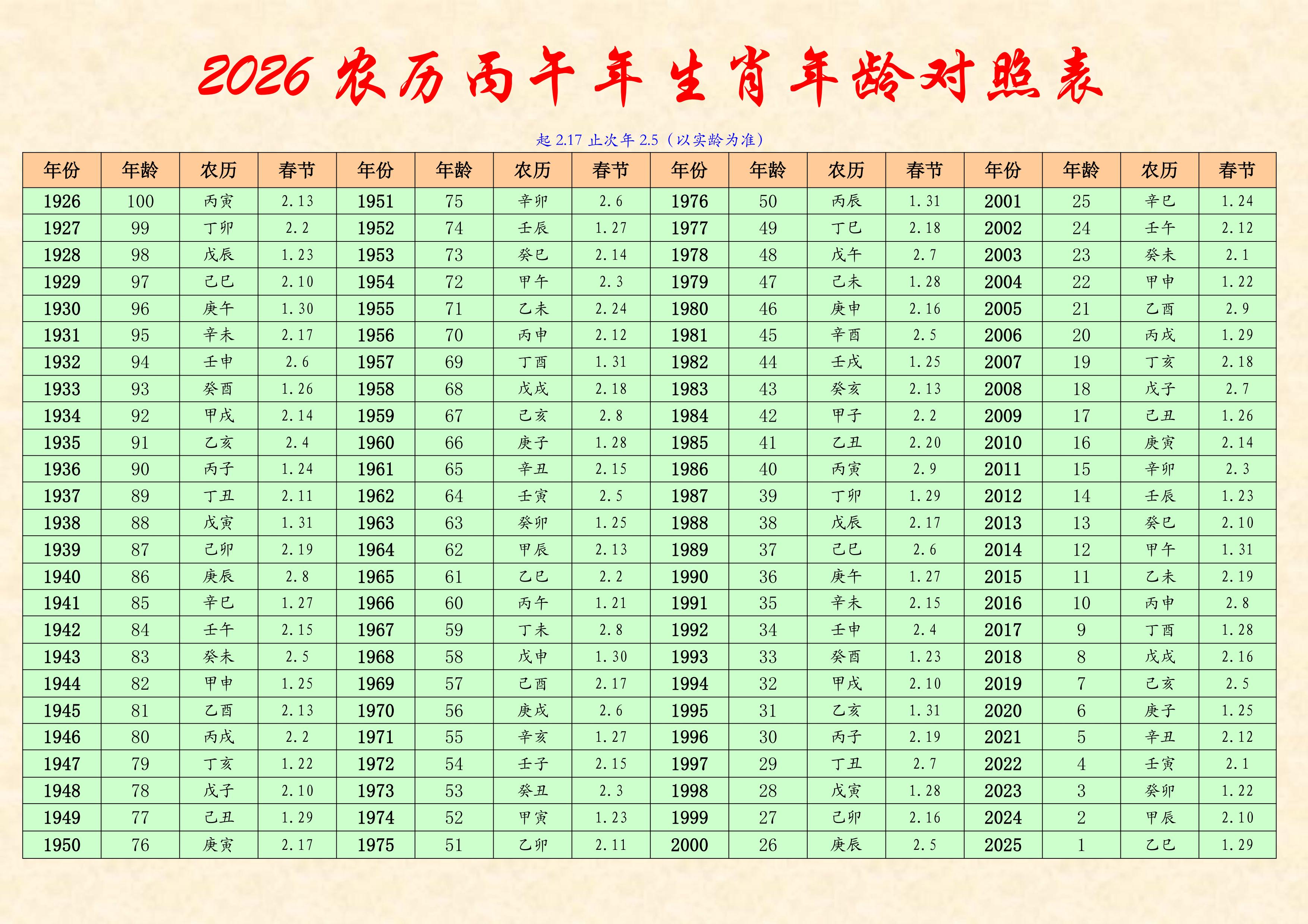 【學(xué)習(xí)園地】2026年農(nóng)歷丙午年生肖年齡對照表