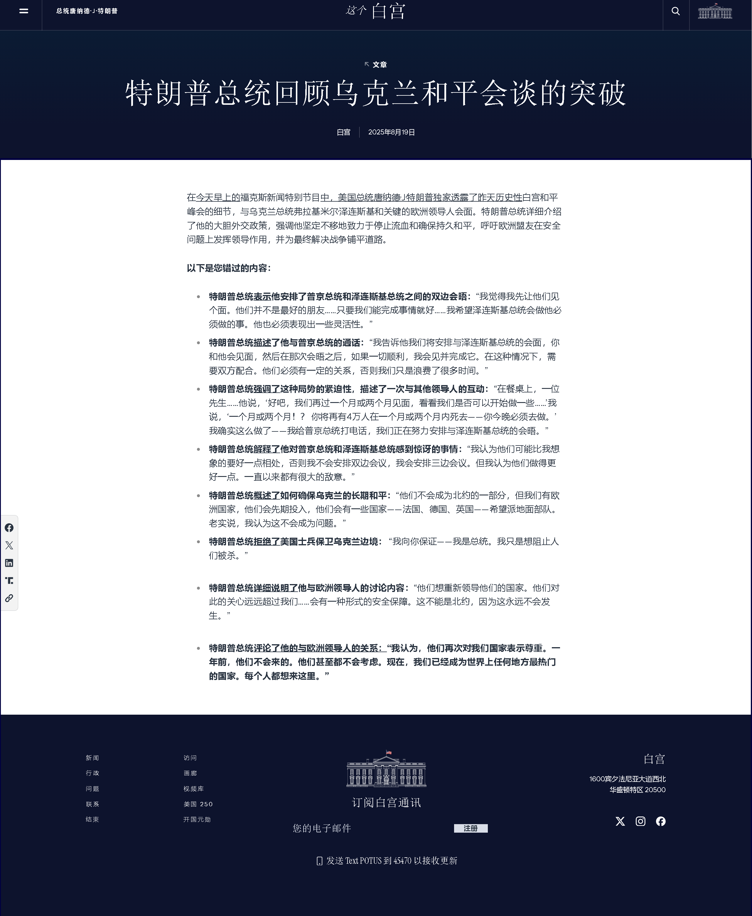 特朗普總統(tǒng)回顧烏克蘭和平會談的突破